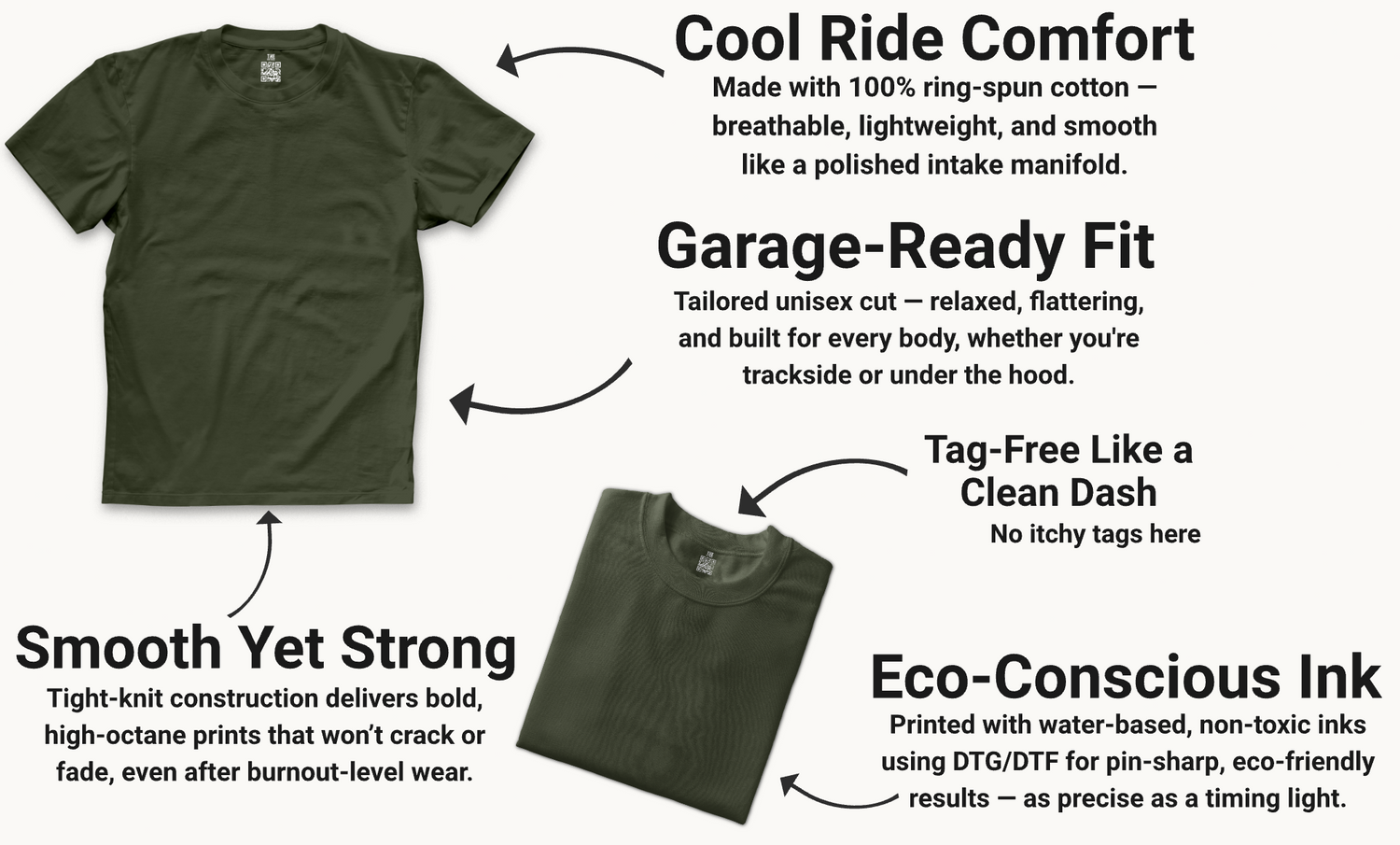 We use high-quality Direct-to-Garment (DTG) printing, ensuring vibrant colors that won't crack, peel, or fade — just like a well-maintained classic car!